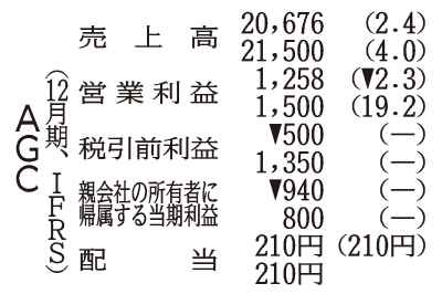 売上高は為替の円安による増収効果や半導体関連の電子部材の好調が寄与して前期比2・4%増の2兆676億円と過去最高だったが、営業利益は自動車用ガラスの製造コスト悪化などにより同2・3%減の1258億円となった。